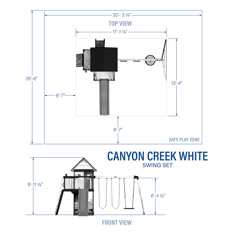 Embark on backyard adventures with the Canyon Creek Swing Set by Backyard Discovery. This charming wooden swing set boasts a variety of features that inspire active outdoor play. The towering rock wall invites daring climbing challenges, while the 8-foot speedy wave slide offers thrilling rides back to the ground. Kids can soar on the exciting web swing or enjoy traditional swinging fun on two comfortable belt swings. Access to the upper clubhouse is a breeze thanks to the flat-step ladder, providing easy entry for children of various ages. Imaginations will take flight in the different play spaces. The charming lower playhouse transforms into a fun bustling café with its a toy BBQ grill, sink, and play food for creative cooking adventures. Little chefs can serve up their culinary creations in the picnic area complete with a built-in table and seating. Meanwhile, the upper clubhouse becomes a command center with its toy telescope, chalkboard, and steering wheel, perfect for make-believe expeditions. Crafted from durable cedar wood, this backyard swing set is ready to assemble and offers guided instructions with the interactive BILT® app. Explore the Canyon Creek and create a backyard playground that brings new possibilities for playful discovery every day.