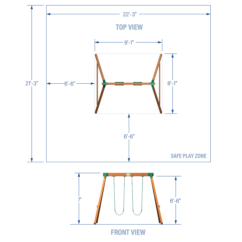 Enjoy classic fun with the Durango Swing Set by Backyard Discovery, a timeless outdoor playset designed to bring joy and excitement right your backyard. This traditional wooden swing set offers a simple yet robust playground experience for children of various ages, combining safety, durability, and pure outdoor enjoyment. Crafted from solid cedar wood, the Durango delivers high-quality craftsmanship and natural durability for long-lasting backyard play. Its solid heavy-duty legs and reinforced A-frame design provide exceptional stability, while the four auger anchors that secure each leg firmly to the ground, ensuring a stable play environment. The broad supportive swing beam accommodates two wide belt swings, allowing children to soar and play together. The belt swings are designed with pinch-free swing ropes that are perfect for small hands. The thoughtful engineering ensures parents can relax while kids enjoy their outdoor adventures. Ready to assemble in just two hours, this outdoor swing set offers easy installation to make setup a breeze. Naturally resistant to rot and decay, the Durango promises years of backyard play time, creating lasting memories and providing a classic outdoor play experience that children will cherish. Perfect for families seeking a reliable, simple, and fun addition to their backyard playground.