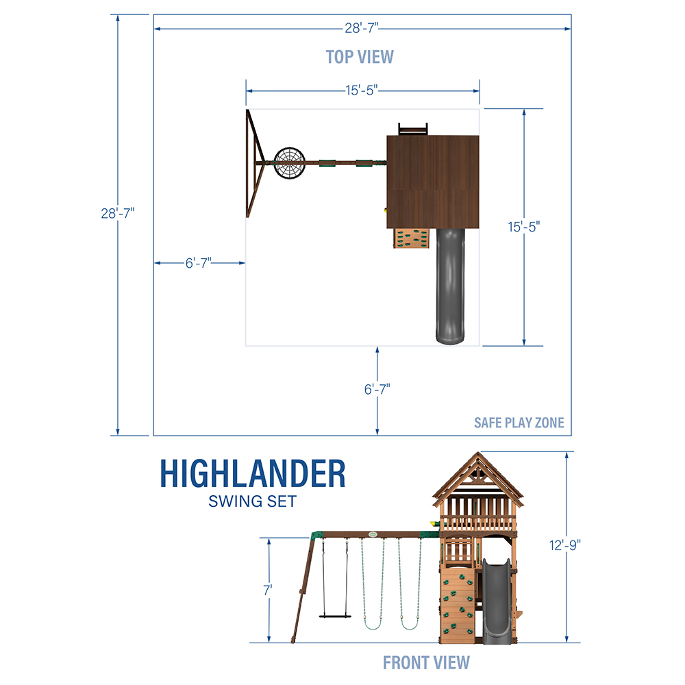 Multi-level playground fun reaches new heights with the Highlander Swing Set from Backyard Discovery. Beautifully crafted from natural cedar, this wooden swing set is designed with not two, but three towering levels for ultimate outdoor adventure. The three-story clubhouse invites little explorers into a world of imaginative active play with a toy telescope and steering wheel for pretend voyages and exciting expeditions. Each level is connected by three flat step ladders, offering easy accessibility for young adventurers of all climbing abilities. Kids can race down the 10-foot speedy wave slide for thrilling rides and conquer the rock wall for daring climbing challenges back up into the clubhouse. Down below, a shaded kids picnic table with an attached bench is perfect for taking a break or enjoying snacks with friends, while the remaining space can be used as a sandbox area for creative sensory play. This sky-high outdoor playset is complete with two belt swings and an exciting web disc swing for soaring and swinging fun. The Highlander comes ready to assemble and offers guided instructions through the BILT® app for an easier setup. Create the ultimate outdoor playground for endless adventures and unforgettable childhood memories with the Highlander Swing Set.