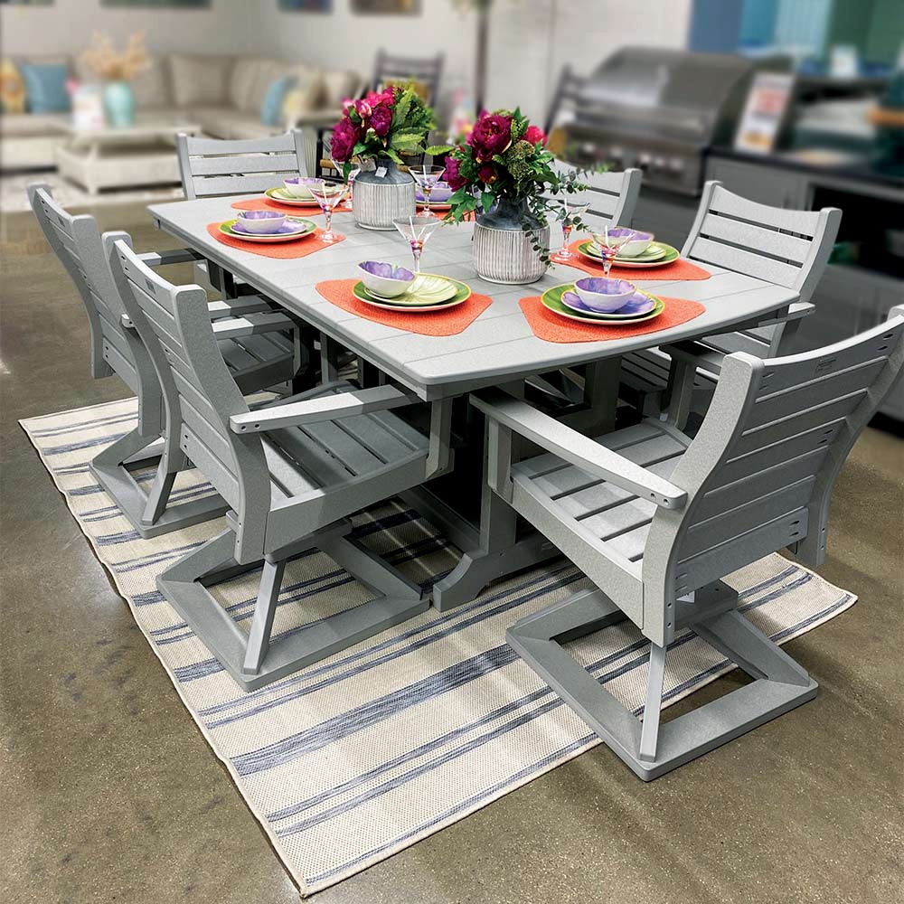 The perfect combination of style and comfort. Gather around this Harbor table and experience outdoor dining at its finest. Poly furniture is made from High Density Polyethylene (HDPE), a recycled plastic that will never need to be painted or stained. It will not rot or splinter, and it contains an added UV protective agent to resist fading. Poly Furniture is not affected by most corrosive substances and will not promote bacterial growth.