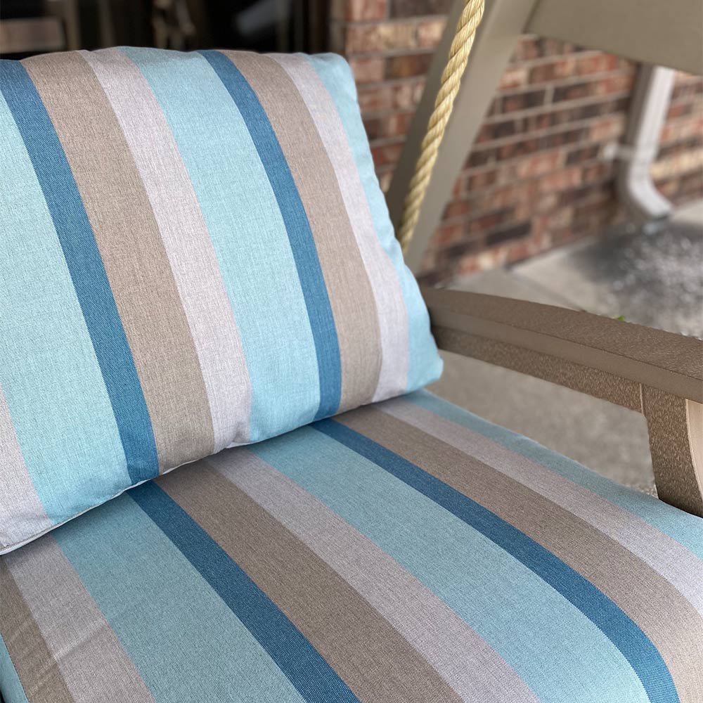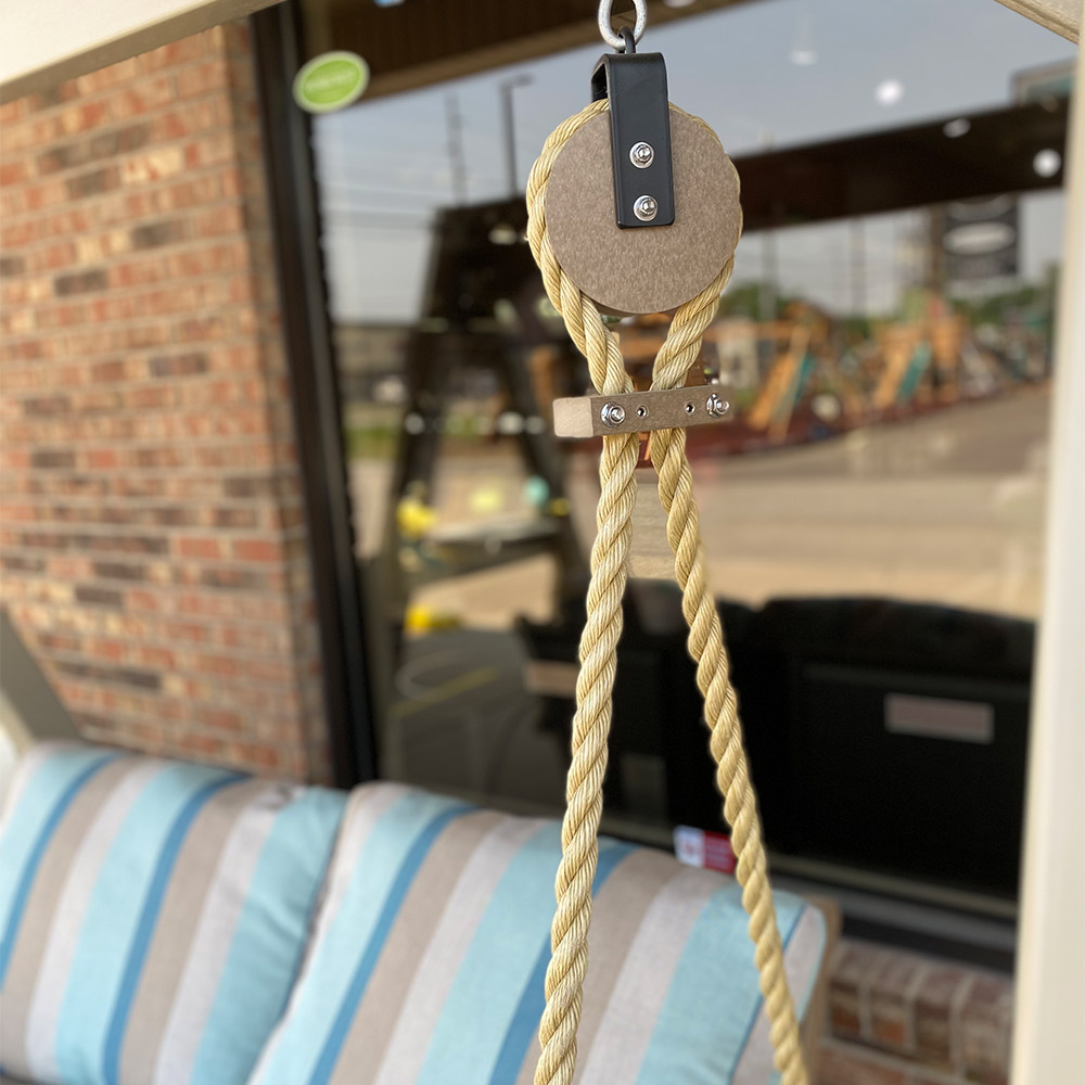 Indoor-quality comfort meets outdoor-quality durability. Experience the epitome of relaxation and charm with the Classic Terrace Loveseat Swing, combining the timeless appeal of a swing with the comfort of a loveseat for a delightful outdoor seating experience. The pulley style supports give a subtle, rustic cozy feel. Made from the strongest, highest grade poly lumber, this swing is meant to last generations!