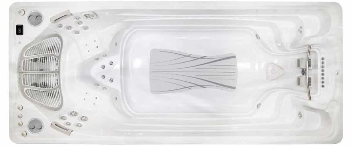 The 16 Executive Trainer hydromassage seats let you relax after a tough workout. Or power up the jets for an invigorating morning wake-up! Each ergonomically designed seat has a unique configuration of jets – choose the right one to target your sweet spot, or rotate among them for total-body relaxation. The durable, steel-framed cabinet has sleek, modern swim spa styling that’s virtually maintenance-free. Finally, the Glacier Tech insulation system allows this swim spa to be used all year long as a four-season pool.