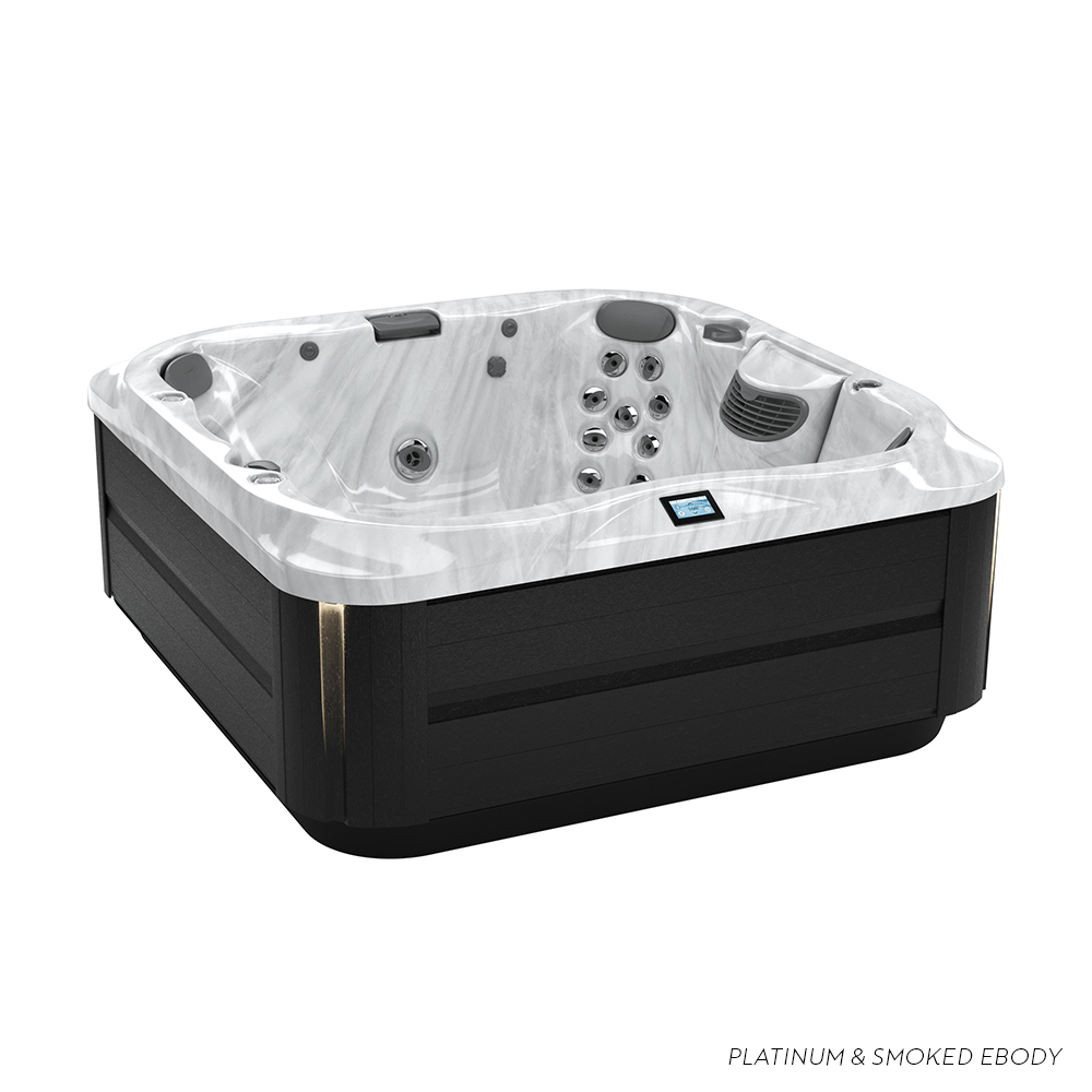 The square J-345™ Hot Tub is moderate in size Features PowerPro® jets Delivers relaxing massage in the PowerPro® Therapy Seat Distinguish by sophisticated ProFinish™ cabinetry with optional corner accent lighting Easy-to-use control panel HydroSoothe™ no-splash jetted massage pillow.