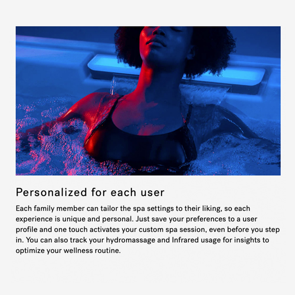 • User profiles allow each family member to save their hydrotherapy, lights and audio preferences, and activate those settings with a single tap