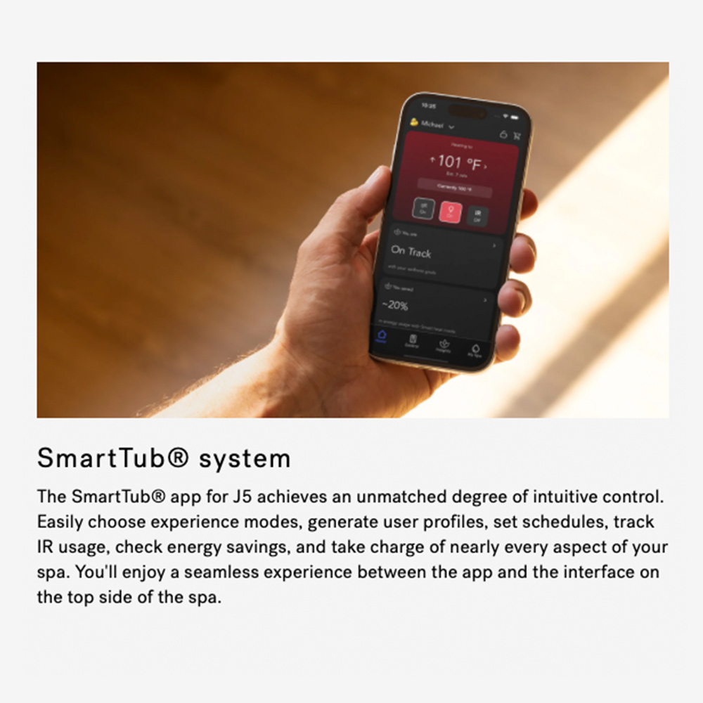 • The SmartTub® app for J5 includes exclusive features that lets you monitor and control your spa like never before
