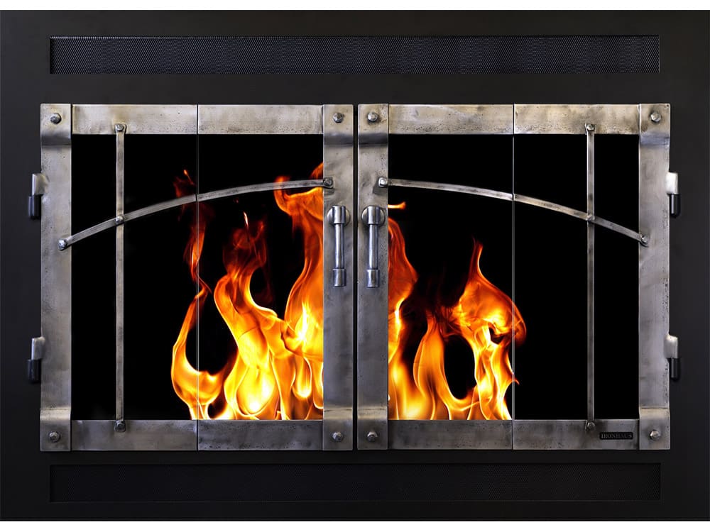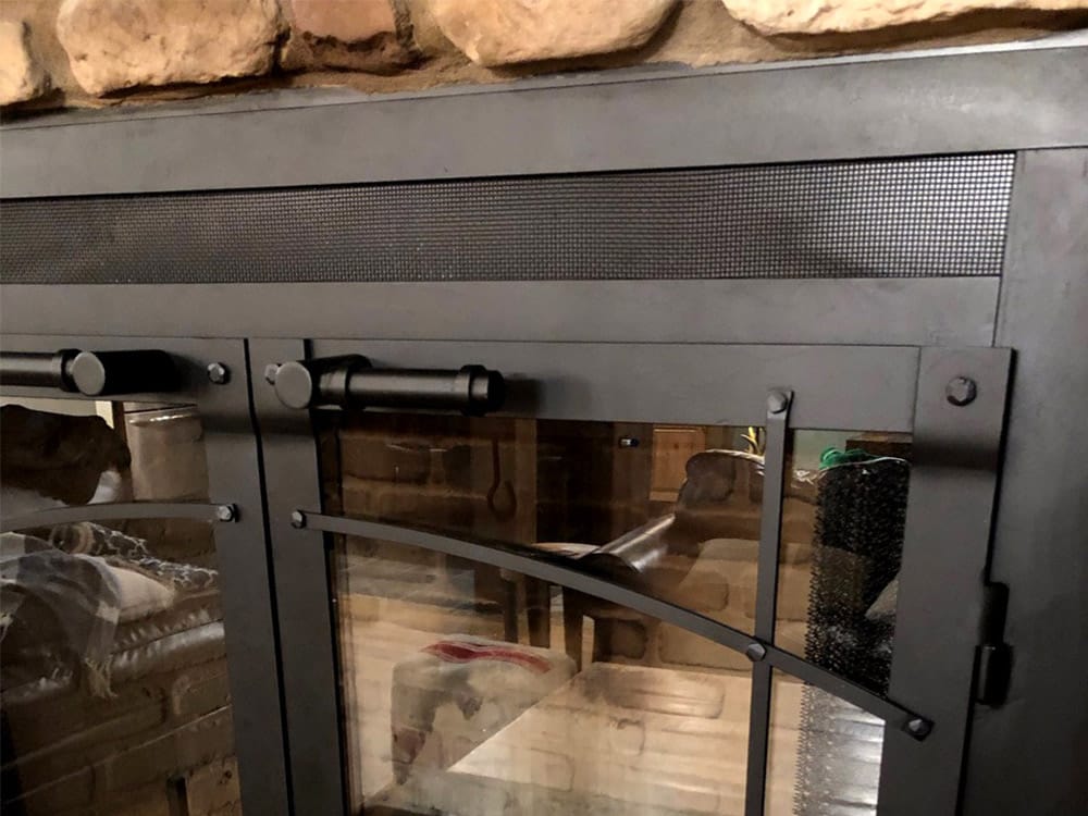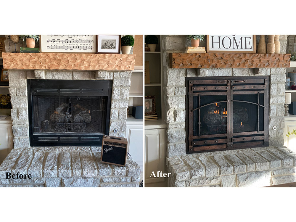 The Makeover Doors give any old Zero Clearance fireplace an instant makeover. Featuring Hand Crafted door designs and incorporating louver options to cover vents above and/or below the fireplace opening. The Makeover incorporates our Hand Crafted elements on the door panels with the outer frame in a more simple style.