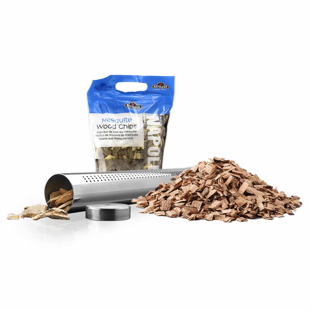 Easily turn your gas grill into a smoker with Napoleon’s BBQ Smoking Starter Kit. Fill the stainless steel smoker tube half way with the chips of your choice, submerge in water, then place on the sear plates of your grill. Preheat the grill to low, and place whatever you’re smoking on the grill. Close the lid and cook low and slow for perfectly smoked flavor. Sweet maple and cherry are perfect for pork and fish, while the bold hickory is great for bacon and beef, the whiskey chips have a nutty-oak flavor that finishes with a hint of aged whiskey, and is fantastic for beef, pork, poultry and spices. Mix and match, and find your flavor with Napoleon’s BBQ Smoking Starter Kit. This BBQ Smoking Starter Kit comes with the stainless steel smoker tube and four flavors of wood chips for variety and big smoky taste. enhance the flavor of your food. It is ideal for adding genuine smoke flavor to meats, vegetables, fruit, cheese, desserts and fish.