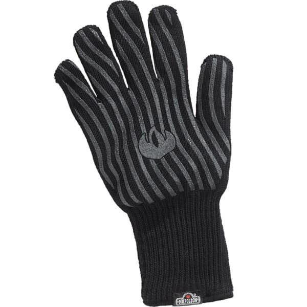 Never worry about burns again when handling hot objects. The Napoleon Heat Resistant BBQ Glove handles hot things up to 475°F and is good for use in the house, outdoors and anywhere things are getting hot. This glove is made from aramid fibers, used in the aerospace industry; a soft cotton liner provides maximum comfort and grey silicone grips line the glove on both sides so nothing will escape your grasp. Reversible for left and right-handed people, this glove is also machine washable, so if you spill, there’s no worry about cleanup.