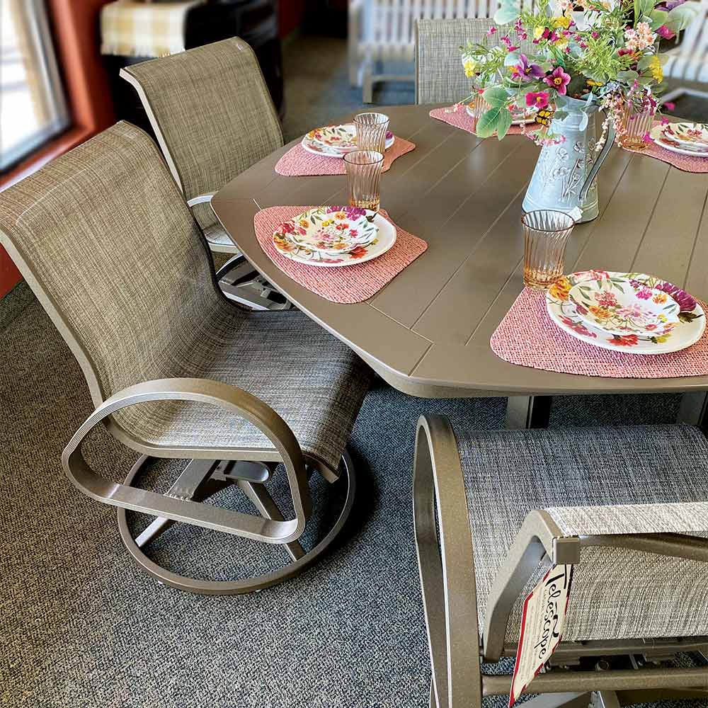 Aruba has a universal style that goes perfectly at a lakeside escape, lounging by the pool, or in your patio! Telescope Casual has been producing quality, outdoor patio furniture in the USA for over a century. Their Marine Grade Polymer, or “MGP”, is sure to provide you with style, comfort, and the best part — little to no maintenance!
