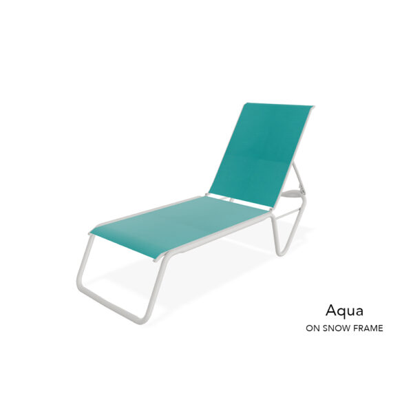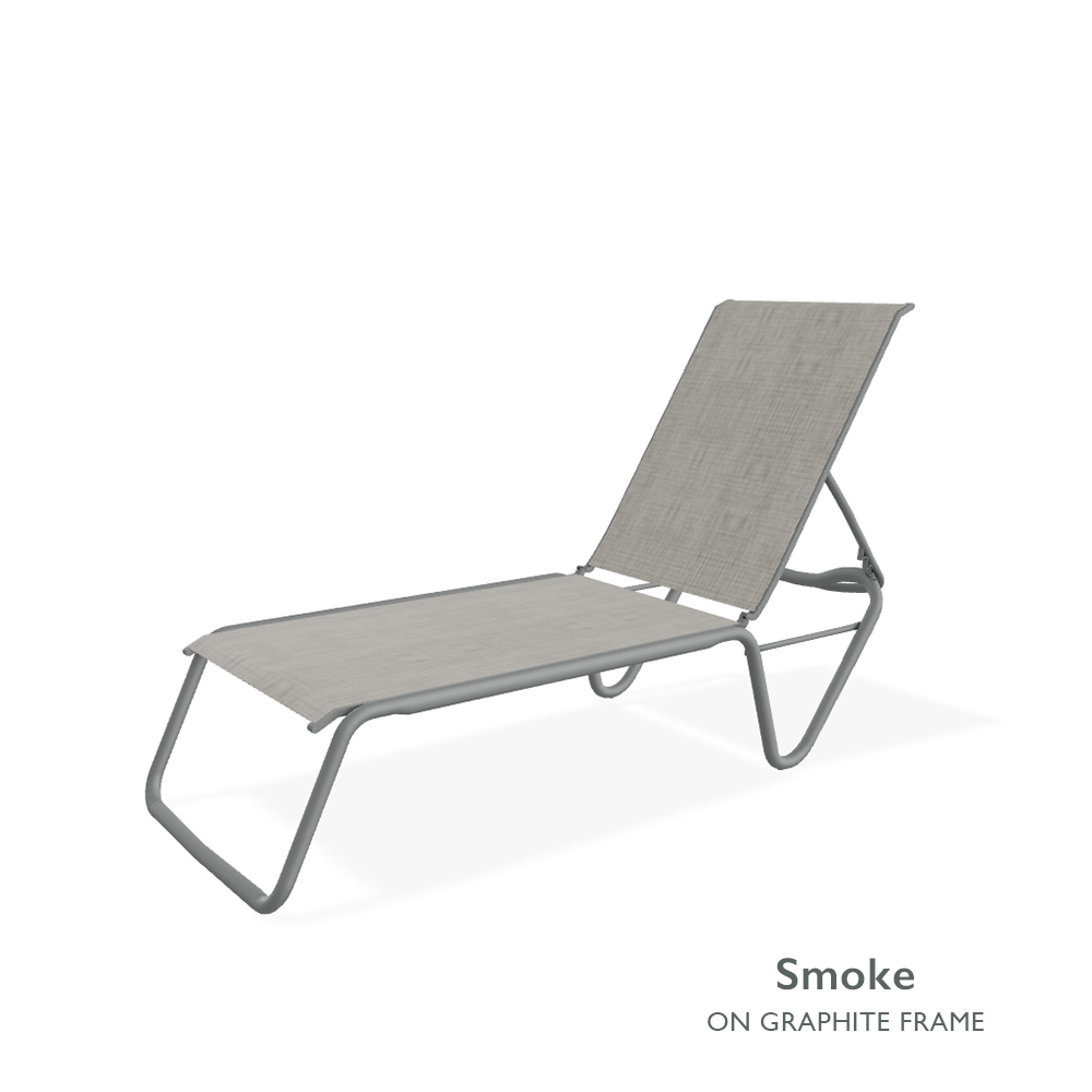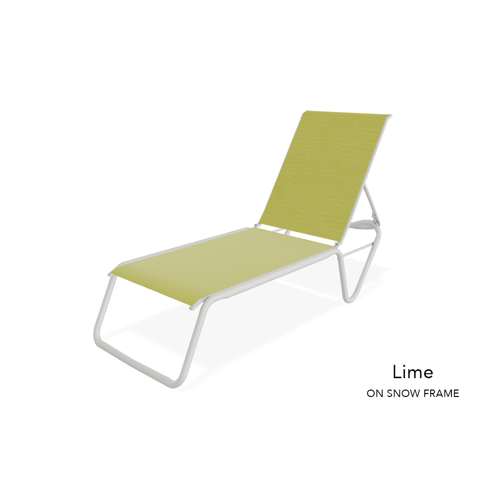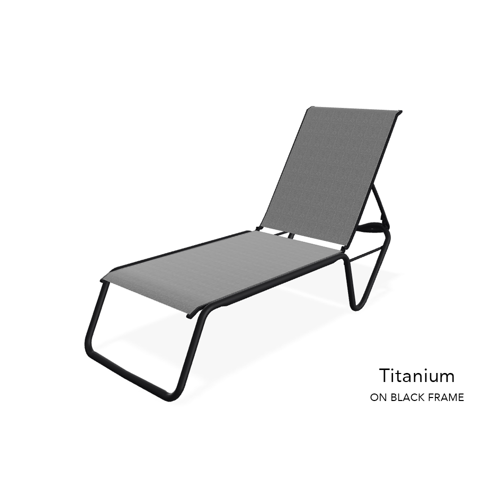 Brighten up your outdoor space with Telescope Gardenella chaise lounge chairs! These lounge chairs are made of sturdy cast aluminum and a strong acrylic sling fabric. They will lay in four positions including laying completely flat, and they are easily stackable.