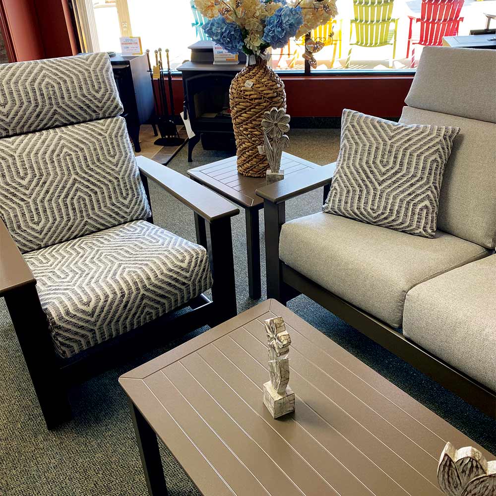The Leeward group by Telescope is the perfect pairing of comfort with a modern touch. The marine grade polymer frame is a non porous, high quality poly lumber that makes maintenance a breeze!