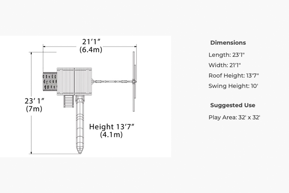 The Titan Treehouse XL 1 swing set is taller and designed for parents and older children to play together! The fort structure has a 7′ high deck with 30 sq. ft. of play space. This swing set also includes a wood roof, 2 – gable kits, 3 position 10′ swing beam, 2 – belt swings, trapeze bar, 14′ rocket slide, and a picnic table. Treehouse Series play sets include our exclusive limited lifetime warranty on all wood, metal, and hardware components.