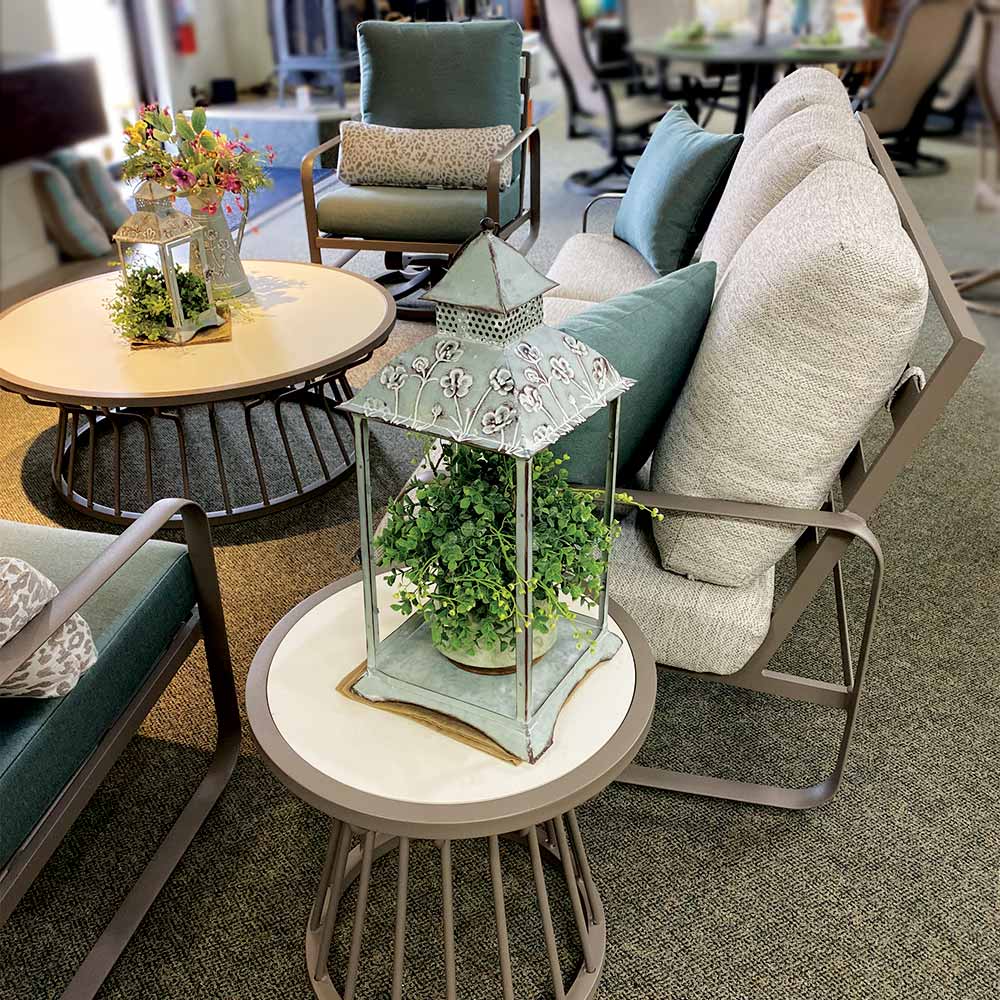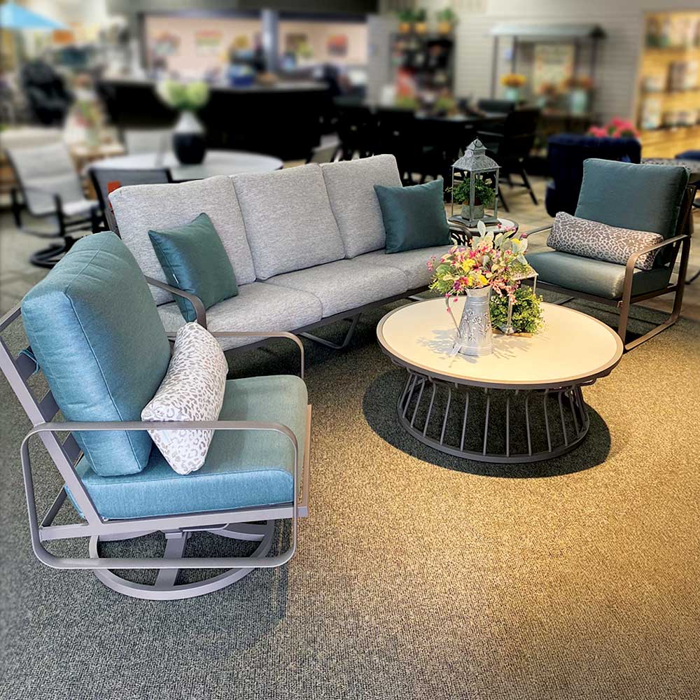 Includes // sofa, throw pillows, bolster pillows, action lounge chair, 20″ tea table, 42″ coffee table