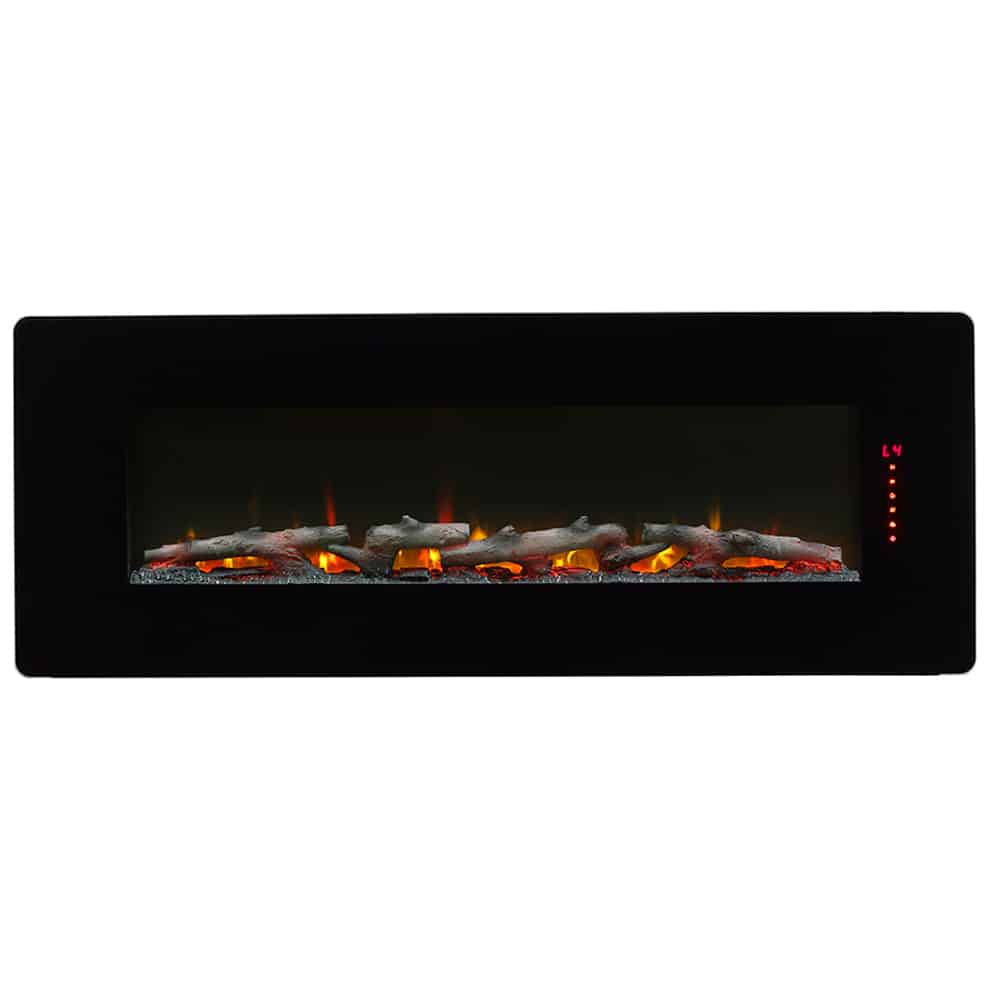 The Winslow wall mount fireplaces are the perfect solution for any space. With the option of easily mounting to the wall, or attaching the table top stand, you will never have a problem finding the right place for the Winslow. With heat venting at the bottom of the fireplace, you can have peace of mind that your electronics are safe above. Switch between three included bed options – go contemporary with vibrant crystals, traditional with logs or choose a more adaptable option with pebbles for a traditional or contemporary look. Create that cozy feeling with the touch of a button by adding a colour glow behind your fireplace, or changing the colour of the ember bed, logs and flames. The Winslow Series provides that clean and smooth finished look with the curved glass.