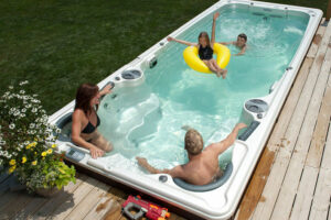 Swim spas offer plenty of room for family fun! With a swim spa, you can enjoy the entertainment benefits of a swimming pool with the added benefits of seating, jets, exercise, and more!